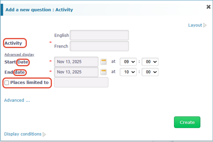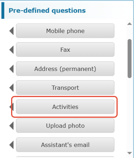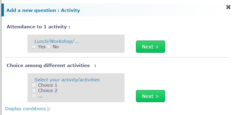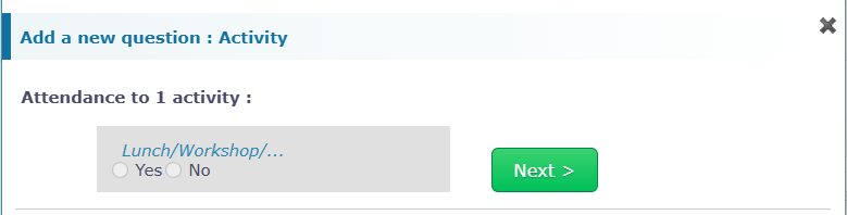 When you add the question, this window opens: it allows you to configure your “Activities”