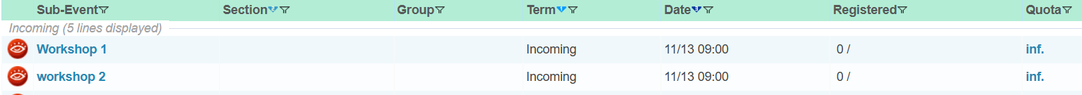 After setting up the question in the form, go to the “Logistics” tab, “Sub-events” to set up table management for your activities. You can create a seating plan for each activity.