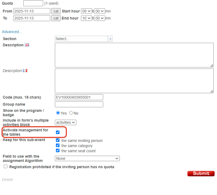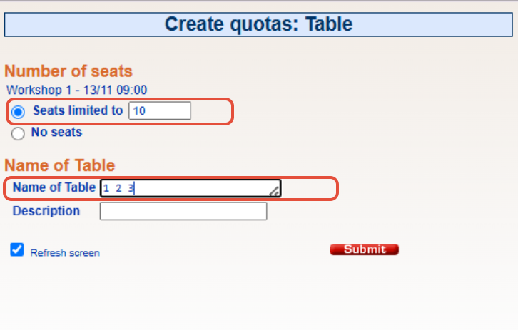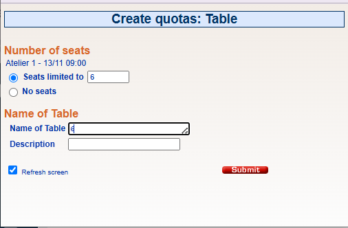 Remarks: don’t forget to insert quotas on your tables. Participants cannot be assigned to tables without quotas.